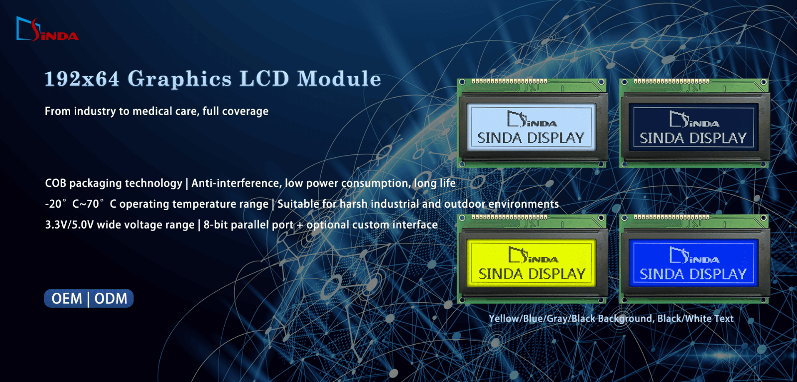 Das 192x64 Grafik-LCD-Modul von Sinda Display zeichnet sich durch stabile Leistung, umfangreiche Anpassungsmöglichkeiten und leicht verfügbare Optionen aus und eignet sich daher für die Anforderungen der Industrie-, Medizin- und IoT-Branche.