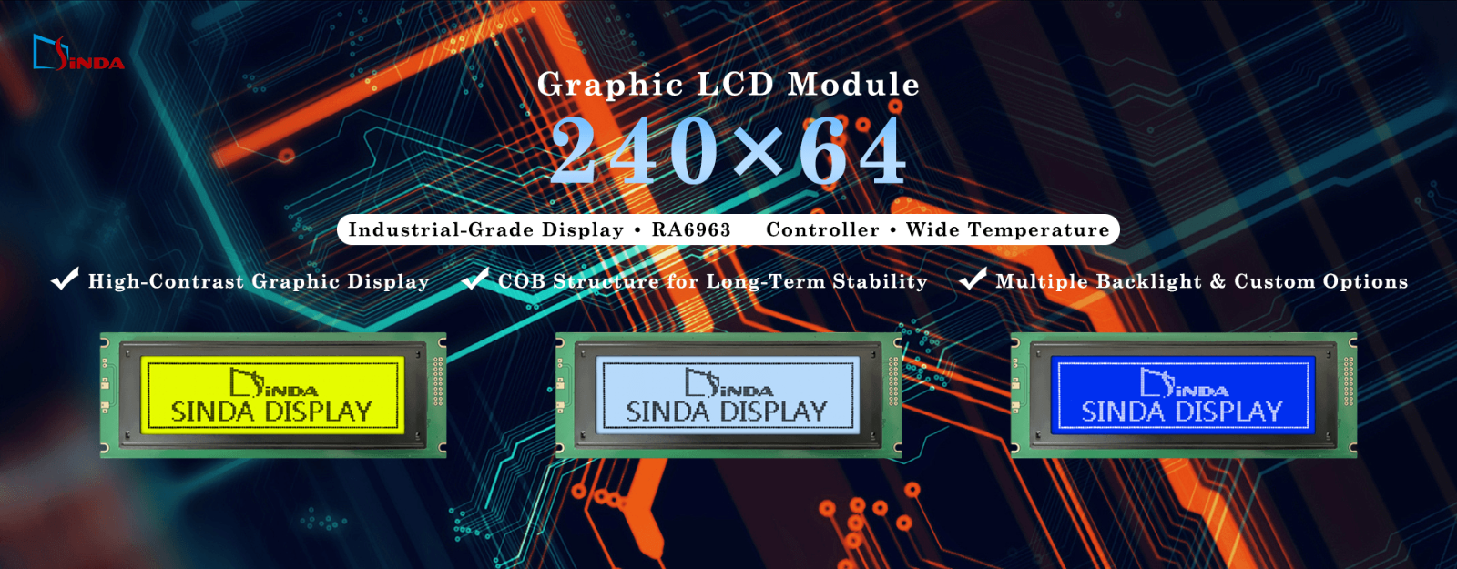 Графический ЖК-дисплей Sinda 240×64 для промышленного и встраиваемого применения.