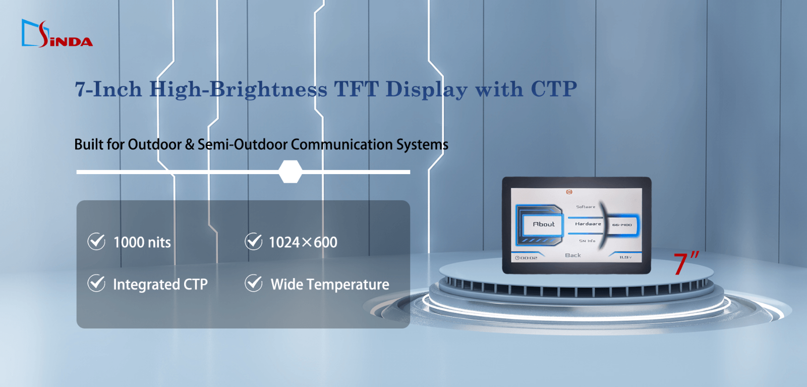Если вы ищете 7-дюймовый TFT LCD-дисплей, дисплей повышенной яркости или решение по индивидуальной разработке сенсорного дисплея (CTP), пожалуйста, свяжитесь с нами для дальнейшего обсуждения.